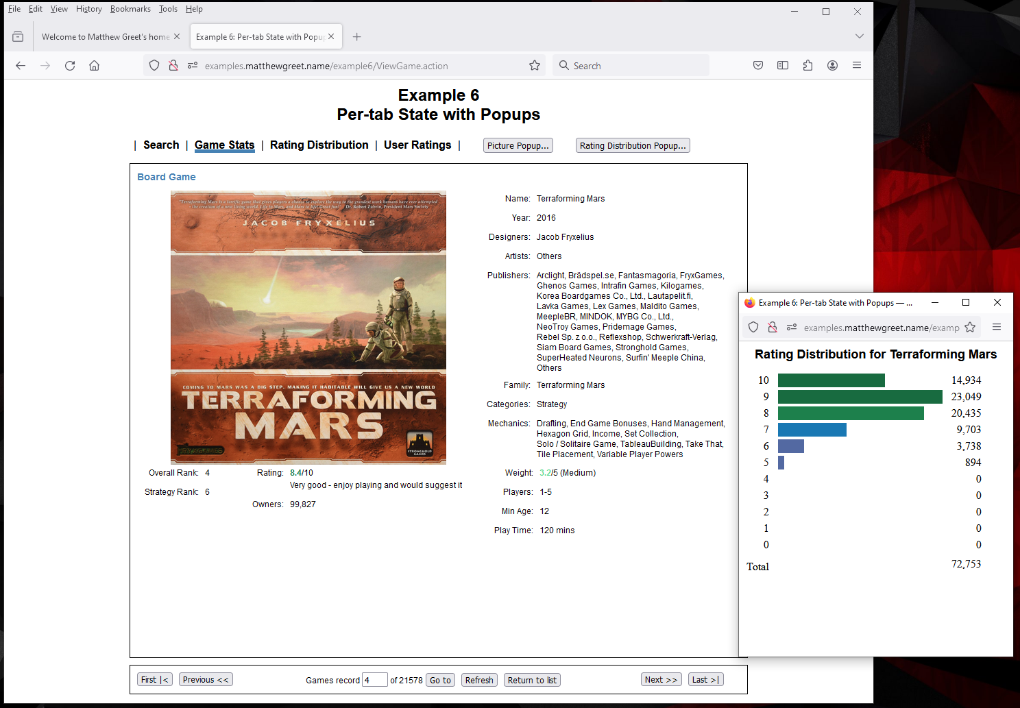 Users expect pages in different tabs to not interfere with each other's session data, even if they're the same page but for different records. The previous article detects when a users open a link in a new tab, thereby confusing tab identification and requiring copying of per-tab session data. This article handles each tab having its own set of floating browser windows.