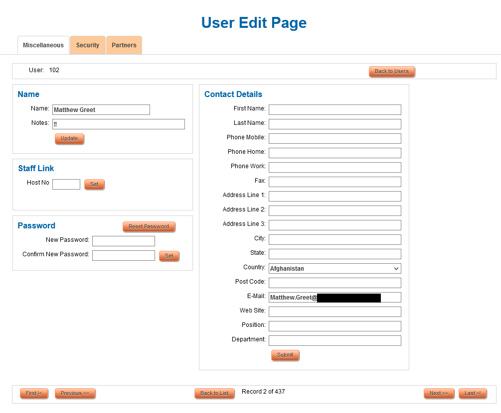 Tutorials about form processing, such as the Apache documentation, dispatch to a JSP page when processing is complete. This is fine till used in practice. Consider the screenshot of a typical page below and notice it has four different forms, one of which uses a dropdown list of countries. The list of countries is not hardcoded in the JSP and must be supplied by the Action. The Struts Action for each form is only concerned about its own job but when it dispatches to the same JSP page, must know how to construct all the other forms and any ancillary data.