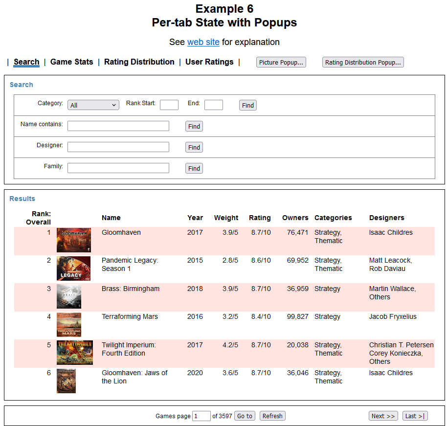 The application searches the games from a 2021 copy of the Board Game Geek database. Credit to Jen Wadkins at Kaggle for compiling the dataset files.